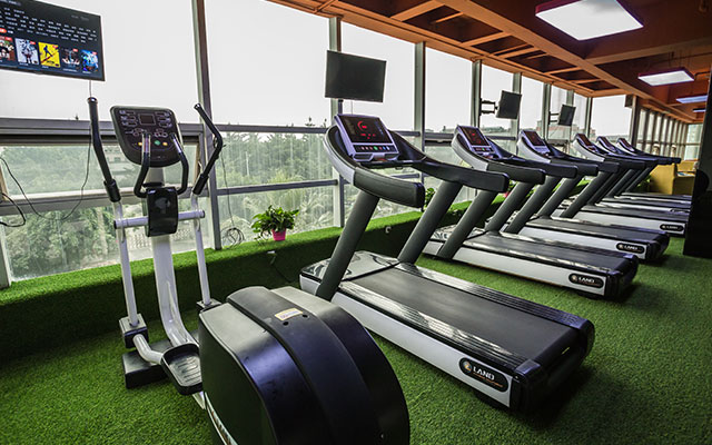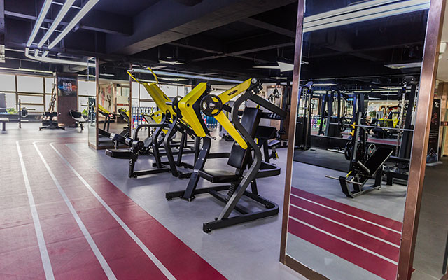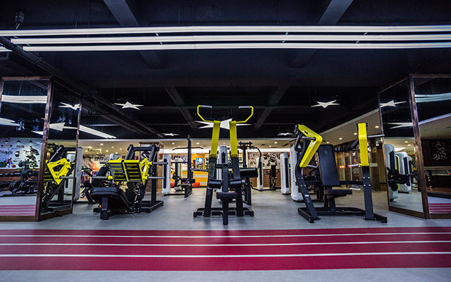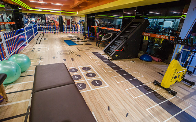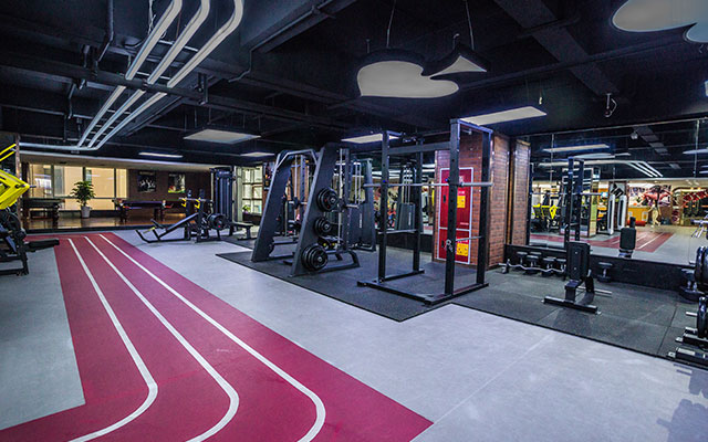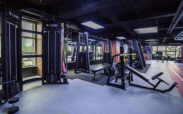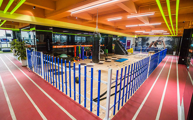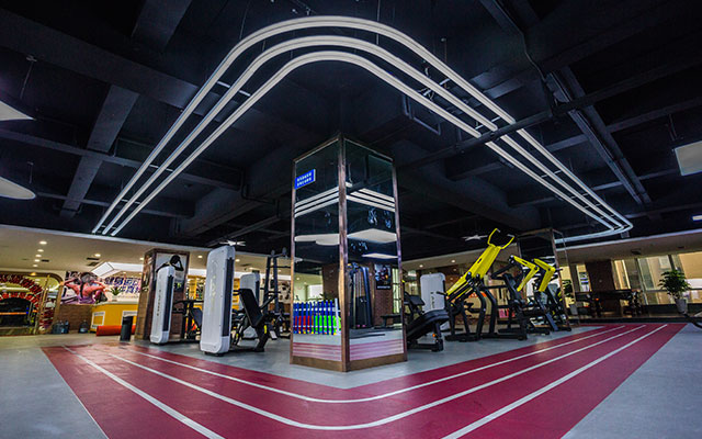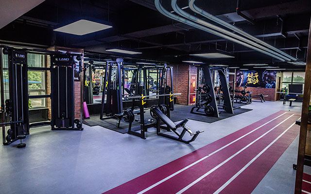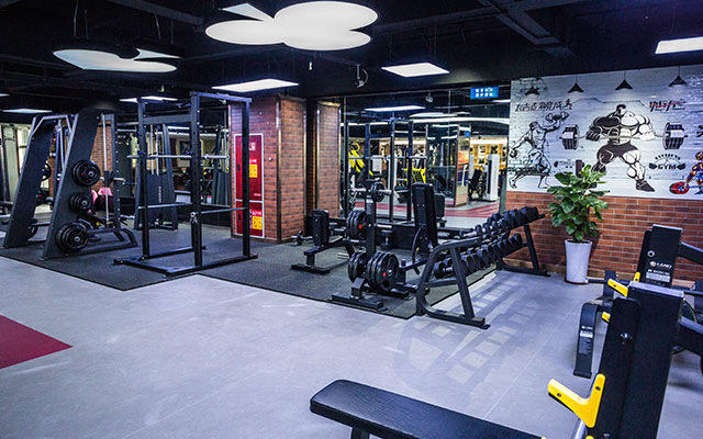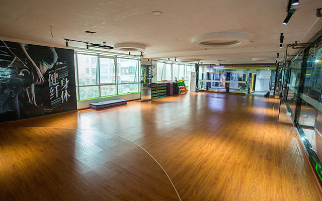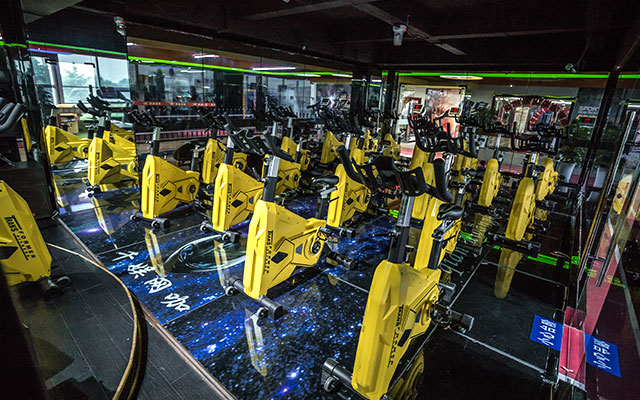 操房)动感单车房、私教活动区和舒适的有氧训练区。